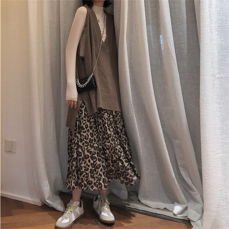 INSスタイル シフォン ヒョウ柄 ロングスカート スリム 大人気 ギャザリング